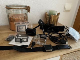 Cámara acuática de acción. Muy poco uso. Marca SJCAM. SJ6 Legend. Grabación en 4 K. Fotos 16 MP. Batería 70’. Wifi. Peso 82 gr. Reloj para la cámara de la misma marca. Viene con una pila para el reloj. Con los accesorios que se ven en las fotos. Cables de carga originales. Garantía e instrucciones.