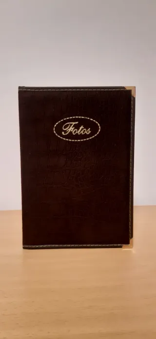 Elegante álbum de fotos con cubierta texturizada efecto piel. - Cubierta de color marrón oscuro. - Detalles en las esquinas y el borde. - Inscripción Fotos en la portada. - Contiene 18 páginas, preparadas para 2 fotos cada una, de hasta 15 x 21 cm. (DIN A5). La capacidad máxima del álbum son 36 fotografías. - Medidas del álbum: 17 x 24 x 1,5 cm. #foto #fotos #fotografia #imagen #fotoprix #hofmann #album #video #videograbacion #recuerdo