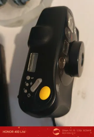 Cámara analógica compacta Olympus MJU i. - Objetivo Olympus Lens 35mm 1:3,5. - Sistema de autoenfoque (AF). - Flash integrado. Funciona todo correctamente menos al hacer la foto el obturador no termina de sacar la foto.