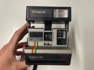Cámara instantánea Polaroid Supercolor 635 con sistema LM Program. Un clásico para capturar momentos. - Diseño icónico con franjas de colores. - Flash integrado para fotos con poca luz. - Lente clara para imágenes nítidas.