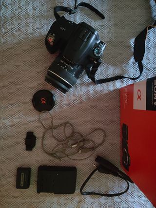 cámara de fotos RÉFLEX con todos los accesorios y funda para guardar la cámara de fotos funciona perfectamente