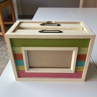 Caja de madera para álbum de fotos. Se puede poner una foto en el frente de la caja, y dentro hay 2 pequeños álbumes cada uno de ellos para 20 fotos tamaño estándar 10x15cm. En muy buenas condiciones, no tiene ningún desperfecto.