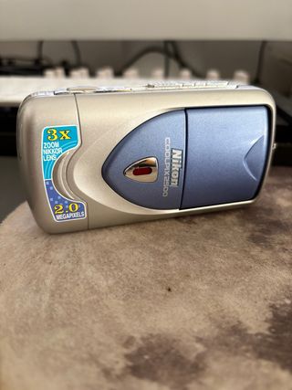 Camara digital nikon coolpix 2500 vintage RARA Enciende bien, se puede navegar el menu y los botones funcionan todos, lee la tarjeta de memoria sin problema. DEFECTO: La pantalla aparece totalmente negra al querer hacer una foto. No sé lo que pueda ser. La vendo para piezas, bateria recien comprada incluida, tarjeta de memoria NO incluida. Envío o entrega en mano.