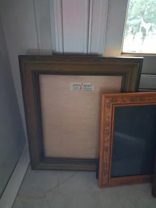 Conjunto de tres marcos de fotos con diferentes tamaños y acabados. - Marco verde: 27x33 cm - Marco con flores: 20x26 cm - Marco marrón: 18x24 cm