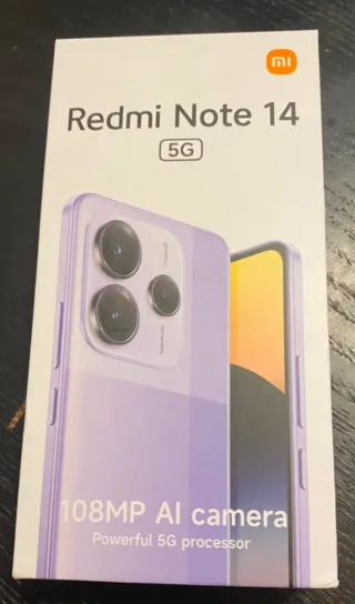 Teléfono móvil Xiaomi Redmi Note 14 5G en color morado y con 256 GB de almacenamiento. Desprecintado solo para ver si estaba todo correcto. Preciós nuevo 258€ (mira última foto). Lleva un protector de cristal ultraresistente y regalo una funda negra original Xiaomi. - Cámara IA de 108 MP. - Potente procesador 5G.