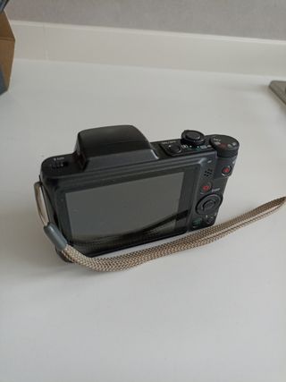 Camara con flash, con doble estabilizador, 12 megapixeles, HD, con pantalla LCD, zoom de 18x, lente LEICA, visor para tomar fotografías manuales, entrada para tarjeta SD, grabación HD, con cargador y bateria nueva a estrenar, cable, con micrófono y protector solar. Incluye funda. En perfecto estado.