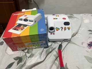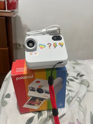Cámara instantánea Polaroid GO Generation 2 con un diseño moderno y divertido. Incluye varios adhesivos decorativos. - Cámara instantánea Polaroid GO Generation 2. - Adhesivos temáticos de arcoíris y símbolos. No a tomado ni una sola foto esta total mente nueva y los estikers se pueden retirar