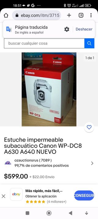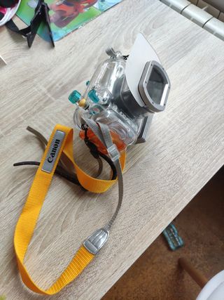 Funda submarina CANON WP-DC8 de hasta 40m reales de profundidad (ha sacado fotos en algo más.. y cámara CANON Poder shit A630 . debajo del agua puedes seleccionar todas las maniobras. Es una pasada.Solo la funda me costó 600 euros y hoy se vende en unos 500. Adjunto foto.