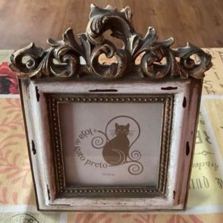 Marco de foto con un diseño vintage y ornamentado, perfecto para dar un toque especial a tus recuerdos. - Acabado en blanco envejecido y dorado. - Detalles tallados en la parte superior. - Tamaño de foto: 10x10 - PRECIO NO NEGOCIABLE NO CONTESTÓ A OFERTAS