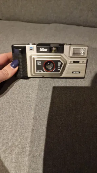 Cámara de fotos analógica de la marca Nice, modelo N-500. Un dispositivo clásico para capturar tus momentos. Es una cámara compacta de 35mm. Cuenta con una lente de enfoque libre de 38mm con una apertura de f/4. Incluye un flash integrado con interruptor de encendido/apagado. Dispone de un control manual para la velocidad de la película (ASA). - Lente de cristal. - Fabricada en Japón.