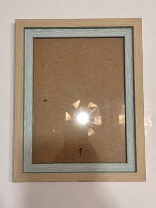 Marco de fotos con doble borde, uno de madera clara y otro en tono azulado. En perfecto estado - Medidas exteriores: 19x24 cm. - Medidas interiores: 13.5cm x 19cm - Diseño moderno y versátil. Envío rápido Precio negociable