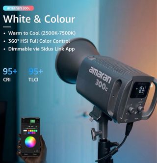 Luz de punto LED Amaran 300c con control de color. Amaran 300c (RGB, 300Watt) - Luz LED de Punto Continuo, Monoluz de Video, Color Completo para Fotógrafos, Estudio - Bluetooth 5.0 Mesh, Montura Estándar Bowens, Ajuste Verde-Magenta - Rango de temperatura de color de 2500K a 7500K. - Control de color HSI completo de 360°. - Atenuable a través de la aplicación Sidus Link. - Alta fidelidad de color con CRI y TLCI de 95+. -PRODUCTOS NUEVOS, sellados, disongo de 3 unidades, El de las fotos, solo se abrió para hacerle las fotos. Precio por unidad!