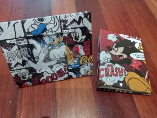 Marco y álbum de fotos con diseño de cómic de Disney. - Ilustraciones de Mickey Mouse y Donald. - Estilo cómic con onomatopeyas como POW y CRASH.
