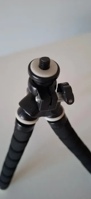Este minitripode es flexible y compacto. - Patas flexibles para adaptarse a diferentes superficies. - Cabezal giratorio para ajustar el ángulo. - Construcción ligera y duradera. Altura 18 cm Valido para camaras de fotos y video Gopro etc Sony panasonic lumix fuji kodak Compatible