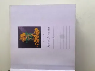 Vendo álbum de fotos original de Anne Geddes, ideal para guardar recuerdos especiales como fotos de bebé, infancia, familia o momentos importantes. El álbum tiene un diseño muy cuidado y delicado, con portada decorada con flores secas amarillas y lazo decorativo, típico del estilo tierno y artístico de Anne Geddes. En el interior incluye páginas con espacio para fotografías y líneas para escribir dedicatorias o recuerdos (“Special Memories”).