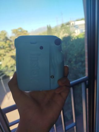 Cámara instantánea Fujifilm Instax Mini 11 en color azul. - Diseño compacto y moderno. - Flash incorporado para mejores fotos. - Lente para selfies. - Apenas tiene uso