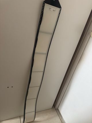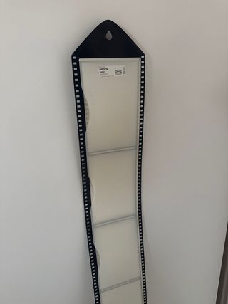 Marco de fotos modelo Drops de Ikea. Tiene un diseño inspirado en un carrete de película y capacidad para varias fotos. - Color negro y blanco. - Para colgar en la pared.