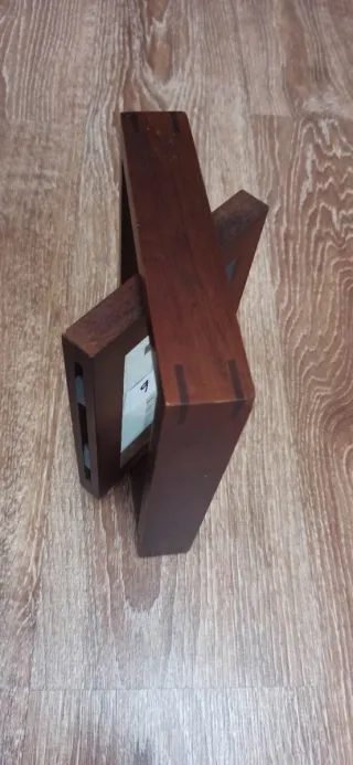 Marco de fotos doble de madera oscura. Medidas 23 x 18 cm. - Capacidad para dos fotografías. - Medida para fotos de 9x14 cm.