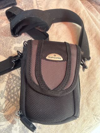 Preciosa funda para cámara de fotos de la marca Samsonite. Está en muy buen estado y es perfecta para transportar tu cámara de forma segura. - Diseño compacto y ligero. - Asa de hombro ajustable. - Interior acolchado para proteger tu cámara.
