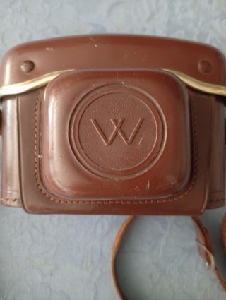 Funda de cuero para cámara de fotos antigua. - Diseño clásico y elegante. - Cierre seguro para proteger el equipo. - Correa ajustable para llevarla cómodamente.