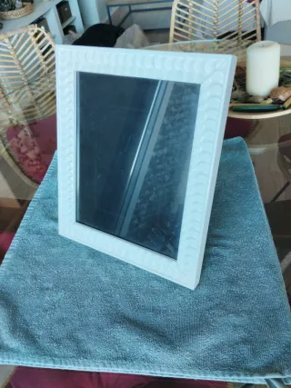 Elegante marco de fotos con acabado espejo. Ideal para colocar tus recuerdos más preciados. - Diseño moderno y brillante. - Tamaño para foto de 9x13 cm.