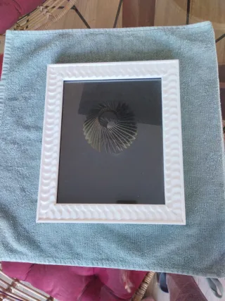 Marco de fotos blanco con un diseño texturizado en el borde. - Medidas: 20x25 cm.