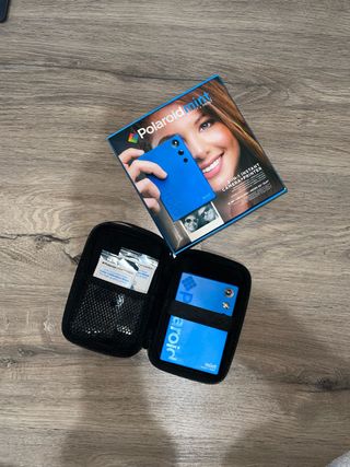 Cámara instantánea Polaroid Mint en color azul. Este dispositivo combina la captura de fotos con la impresión inmediata. - Cámara y impresora 2 en 1. - Incluye funda protectora. - Contiene paquetes de papel para calibración. -Incluye cable de carga
