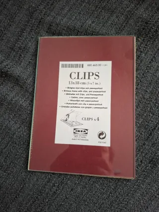 Marco de fotos de la serie CLIPS de IKEA, con unas medidas de 18x24 cm. Disponibles 2. Precio por unidad - Incluye clips y passepartout. - Diseño sin marco.