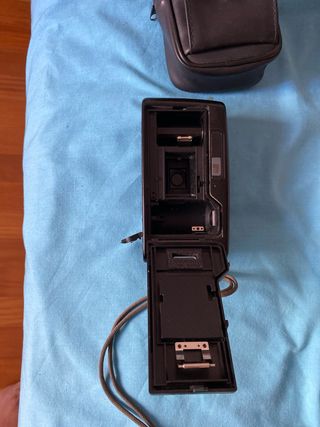 Cámara de fotos analógica vintage marca Minolta modelo FS-35 focus free dx auto. Funciona pero hay que sujetar el compartimento de las pilas con un celo para que no se caigan.