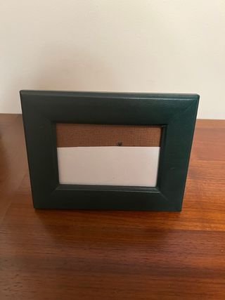 Portarretratos de color verde para fotos de tamaño 11x7,5 cm. Ideal para colocar tus recuerdos favoritos. - Marco de color verde simulando piel. - Diseñado para fotos de 11x7,5 cm. - tamaño total 18 altura x 14 largo x 1 de fondo