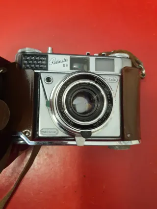 Cámara fotográfica clásica Kodak Retinette IIB. - Fabricada en Alemania. - Lente Schneider-Kreuznach Reomar 1:2.8/45mm. Flash interno. - Incluye funda de cuero.Funcionando.Para coleccionistas y para aquellos que les gusta hacer fotos en carretes de 35mm. Camara muy cuidada. Se incluye un flash externo Asahi Pentax. Cámara 68€ , flash pentax 25€ , los dos 80 Se vende en mano y se envía.