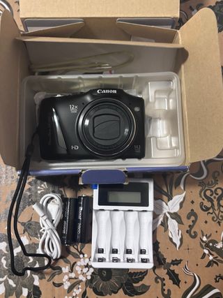 Incluye cargador y baterias AA recargables compatibles, no marca Canon Casi sin uso No incluye memory card Caja con desgaste de los años NO CAMBIO NI RESERVO NO ENTREGO EN MANO NO ENVIO MAS FOTOS BLOQUEO MAREANTES PRECIO NO NEGOCIABLE NO CONTESTO OFERTAS