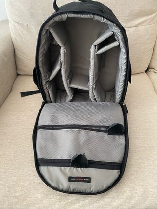 Preciosa mochila Lowepro para cámara de fotos, en buen estado. Una de las cremalleras de un bolsillo interior no cierra. el resto está perfecto. - Diseño compacto y ligero. - Cremalleras resistentes y funcionales. - Asa superior para facilitar el transporte. - Correas ajustables para mayor comodidad.