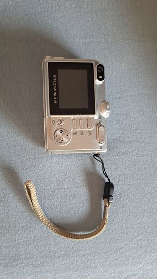 Cámara de fotos 5.0 mega pixel. Funciona con pilas AA y tarjeta de memoria de 512 MB