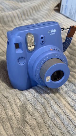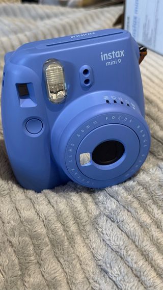 Camara instax mini 9 en color azul practicamente nueva. Solo se ha usado para gastar un paquete de 10 fotos. viene en su embalaje original, con las instrucciones, accesorio de lente sin usar y hasta papel de burbuja protector original. REGALO: caja con 20 papeles fotograficos.