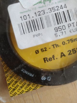 Anillo adaptador Cokin A258 para filtros. Está en su embalaje original y parece estar en buen estado. - Referencia: A258 - Para filtros de 52mm - Fabricado en Francia