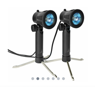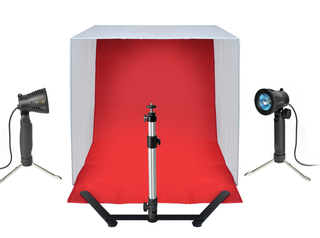 Set completo para realizar fotos de productos perfectamente iluminados con diferentes fondos. INCLUYE - 1 Caja de luz plegable de 60 x 60 x 60 cm con lados difusos de color blanco leche que reducen las sombras fuertes. - 1 Trípode estable con altura máxima de 28 cm para cámara u otros accesorios. - 2 Lámparas halógenas de 50W con trípode de mesa y cabezal - 4 Fondos de tela : negro, rojo, azul y blanco (120 x 60 cm) - 1 Bolsa de transporte En caja original. Está sin estrenar