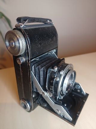 Cámara Beltica I de 1951. Esta cámara de fuelle, fabricada por VEB Belca Werk en la RDA, es un clásico de la fotografía alemana. En buen estado general, con algunas marcas de uso, se vende tal cual se ve en las fotos. Puede presentar problemas comunes en cámaras antiguas (sellos, obturador, lente u óxido). El fuelle está en buen estado. La cámara no ha sido probada. Monta un objetivo Meyer-Optik Trioplan 1:2.9/50 en buen estado. Su aspecto general es bueno. Ideal para coleccionistas, restauración o decoración. Se recomienda revisión por experto para su uso. ¡Adquiere esta joya de la fotografía alemana!