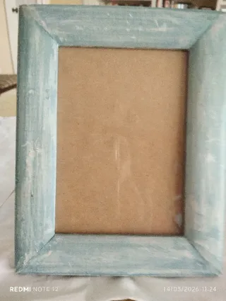 Marco de fotos con un acabado desgastado y estilo rústico. - Color azul pálido con detalles blancos. - Diseño vintage. - sin Marca. - Mide de largo 23 cm, ancho 18 cm y el marco 4 cm