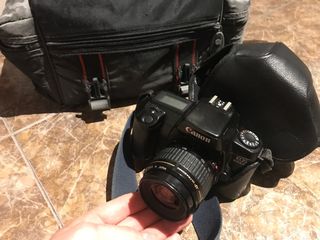 Cámara réflex digital Canon con objetivo. - Cuerpo de cámara negro. - Objetivo Canon Zoom Lens EF-S 18-55mm. Incluye todo lo que aparece en la foto cámara y funda. Ideal para empezar y seguir