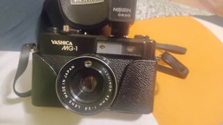 Cámara de fotos Yashica 108 Reflex analógica más flash más teleobjetivo de la marca vivitar está en perfecto estado regalo bolsa para transportarla.