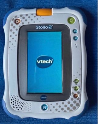 Consola educativa Vtech Storio 2. - Diseño en blanco y azul. - Pantalla táctil. - Botones de control. - Altavoz integrado. - cámara de fotos REGALO mochila prácticamente nueva