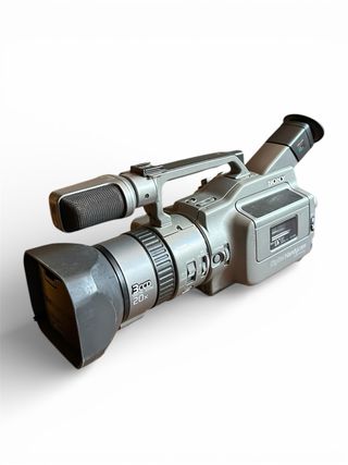 Videocámara profesional Sony DCR-VX1000E en color plateado y negro. Incluye accesorios para su uso. Sirve para grabar y reproducir en televisión. TODO FUNCIONA A LA PERFECCIÓN - 2 baterías incluidas. - Cargador de batería. - Mando a distancia. - Todo tipo de cables. - Incluye bolsa de transporte. - Factura comprada en Japón por 320000 yenes en 1998 (2040€) Entrego en mano en madrid centro con 1 cinta virgen o envío.