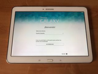 tablet Samsung Galaxy Tab A de 10.1 pulgadas en color blanco. Es una tablet muy equilibrada, ideal para ver series (Netflix, YouTube), leer o para que los niños jueguen y estudien gracias a su pantalla de alta resolución. Especificaciones técnicas: • Pantalla: 10.1 pulgadas con resolución Full HD (1920 x 1200 px), ideal para contenido multimedia. • Procesador: Exynos 7870 de 8 núcleos (Octa-Core) a 1.6 GHz para un rendimiento fluido. • Memoria: 2 GB de RAM y 16 GB de almacenamiento interno. • Ampliación: Ranura para tarjeta microSD de hasta 256 GB (puedes guardar miles de fotos y vídeos). • Cámaras: Trasera de 8 MP