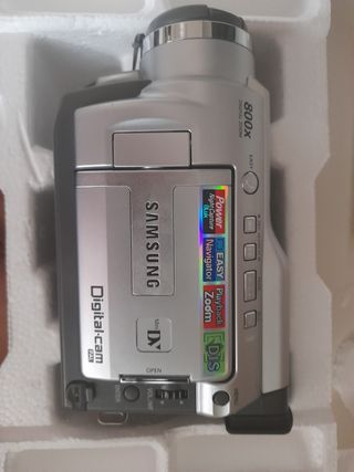 Videocámara Samsung Video 8 con zoom digital 32x. Incluye accesorios. - Zoom digital 32x. - Lente gran angular. - Incluye bolsa de transporte. - Incluye mando a distancia. revisada en perfecto estado impecable la batería como es lógico está floja por el tiempo pero conectada a la red eléctrica perfecto
