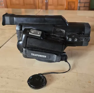 Cámara de vídeo Telefunken VideoMovie VM4000 en color negro. Un modelo clásico para capturar tus recuerdos. - Autofocus 6x Zoom. - Botones: Focus Lock, Shutter STD/1/1000, Rec. Display. - Formato VHS-C. - Alta calidad (HQ). La Cámara la he enchufado y funciona, se abre para meter el vhs, no se si tiene batería incorporada, pero enchufandola se enciende sin problema. Tiene el manual de instrucciones y los cables que se ven en las imágenes, tambien incluye la mochila, las cremalleras no funcionan bien .