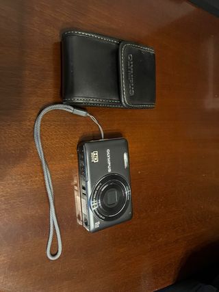 Cámara digital Olympus VG120 en color negro, con su funda original. - Lente Olympus con zoom óptico 5x. - Grabación de vídeo HD Movie. - Pantalla LCD.