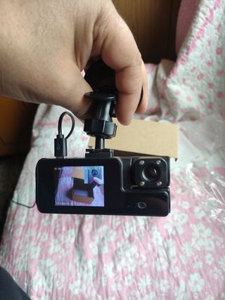 Cámara dual para coche, prácticamente nueva. Incluye ventosa para parabrisas y cable USB. - Graba vídeo en alta definición. - Diseño compacto y discreto. - Fácil instalación. (El camera funciona solo con cargador el cable del cargador mide 3 metros y mas)