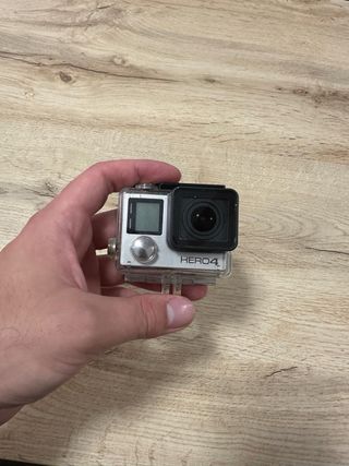 Vendo cámara deportiva GoPro HERO4 Silver en buen estado. Es una cámara compacta y ligera, ideal para grabar tus aventuras. La camara funciona perfectamente. Graba 4k y tiene pantalla trasera - Incluye la carcasa estanca con marcas de uso pero en buen estado - Cámara en perfecto estado estético.