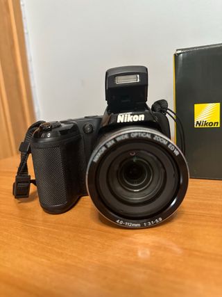 Cámara digital Nikon Coolpix L340 en color negro. Ideal para capturar tus momentos especiales con facilidad. - Zoom óptico 28x. - Pantalla LCD de 3 pulgadas. - Grabación de vídeo HD. Incluye funda de transporte y palo selfie No tiene apenas uso La camara funciona a pilas